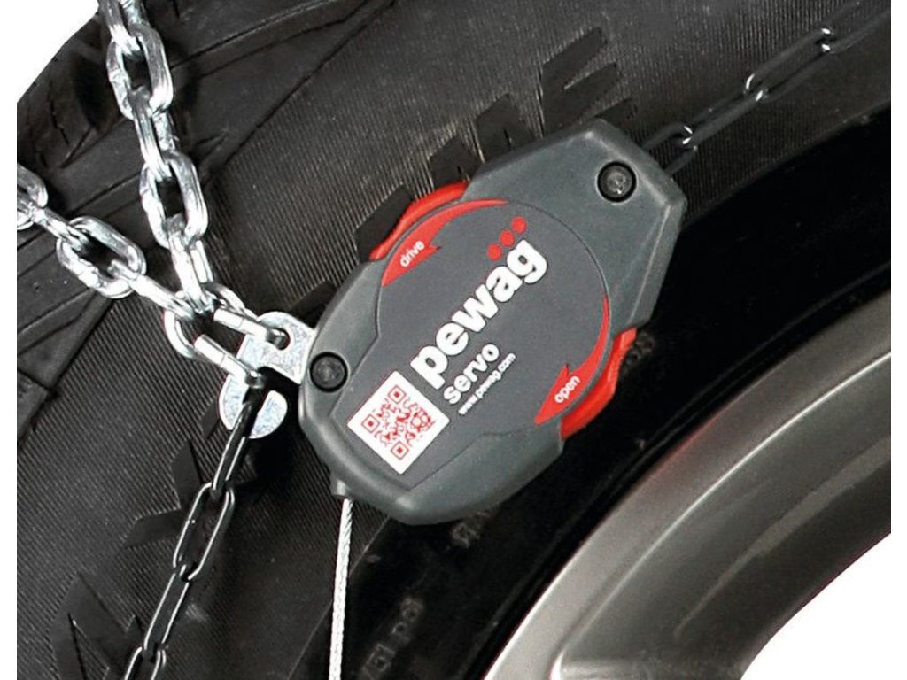 Navržen pro suv vozy. pewag servo suv zastane veškerou práci.Odolný kuličkový uzávěr na vnitřní straně řetězu umožňuje jednoduché uzavření řetězu podběhu.Nová generace automaticky dopínacích ráčen, ve kterých je poprvé použita nová převratná servo technologie, zaručující optimální stejnoměrné dopínání během jízdy tak, že není nutné další zastavení a manuální dopínání. K ochraně disku slouží plastové díly na boku řetězu a je vybaven pewag elementy pro ochranu disku Přednost: články řetězové sítě z materiálu o síle 3.55 mm jsou vhodné jak pro použití na zasněžených silnicích, tak i polních cestách. K jízdě přes drny a kameny pewag austro a pewag austro super zesílené. Prosím, dbejte pokynů výrobce vozidla kvůli dostatečnému prostoru podbězích.