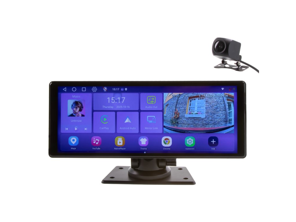 Monitor 10,26" s OS Android + Apple CarPlay, Android auto, Bluetooth, micro SD, GPS, DVR