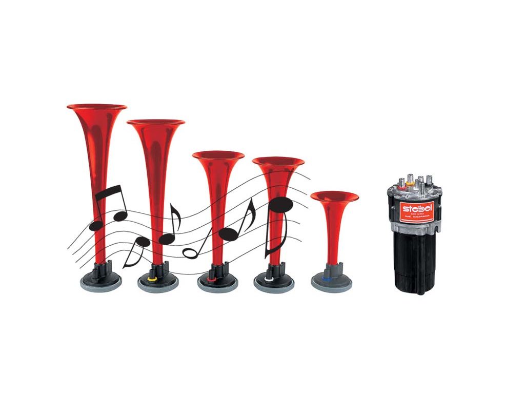 5-trubkové fanfáry poháněné vzduchovým kompresorem hrající melodii. Aftermarketová sada obsahuje vše potřebné pro instalaci. Souprava je určena především pro osobní automobily, motocykly a nákladní auta na 12V. Trubky jsou červené, plastové.