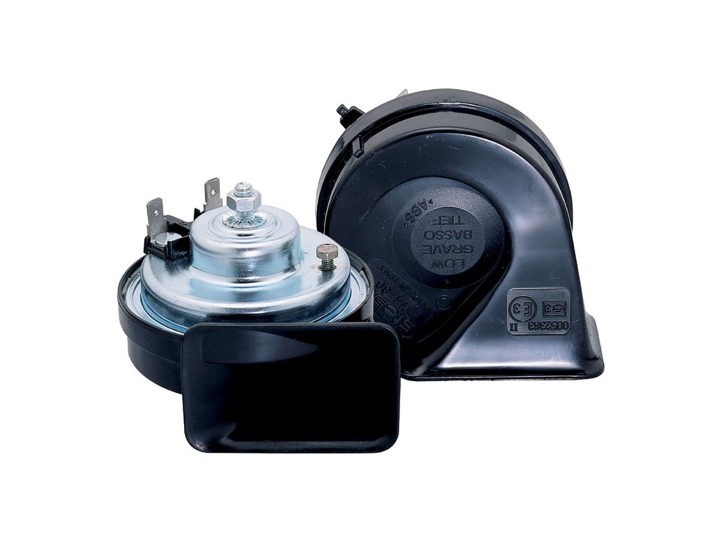 Sada 2 elektromagnetických šnekových klaksonů s nízkým tónem a vysokým tónem. Díky malé velikosti a hmotnosti jsou často používány v prvovýrobě ve standardním automobilovém průmyslu (OEM). Díky malým rozměrům jsou velice vhodné i pro použití u motocyklů. Používají se také místo sirény v poplašných systémech. Homologován CEE-ECE.
