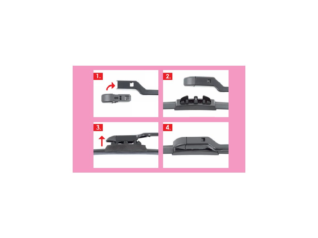 - osaďte stěrač přiloženým nebo dokoupeným adaptérem a po té namontujte na rameno