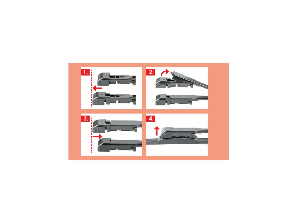 - osaďte stěrač přiloženým nebo dokoupeným adaptérem a po té namontujte na rameno