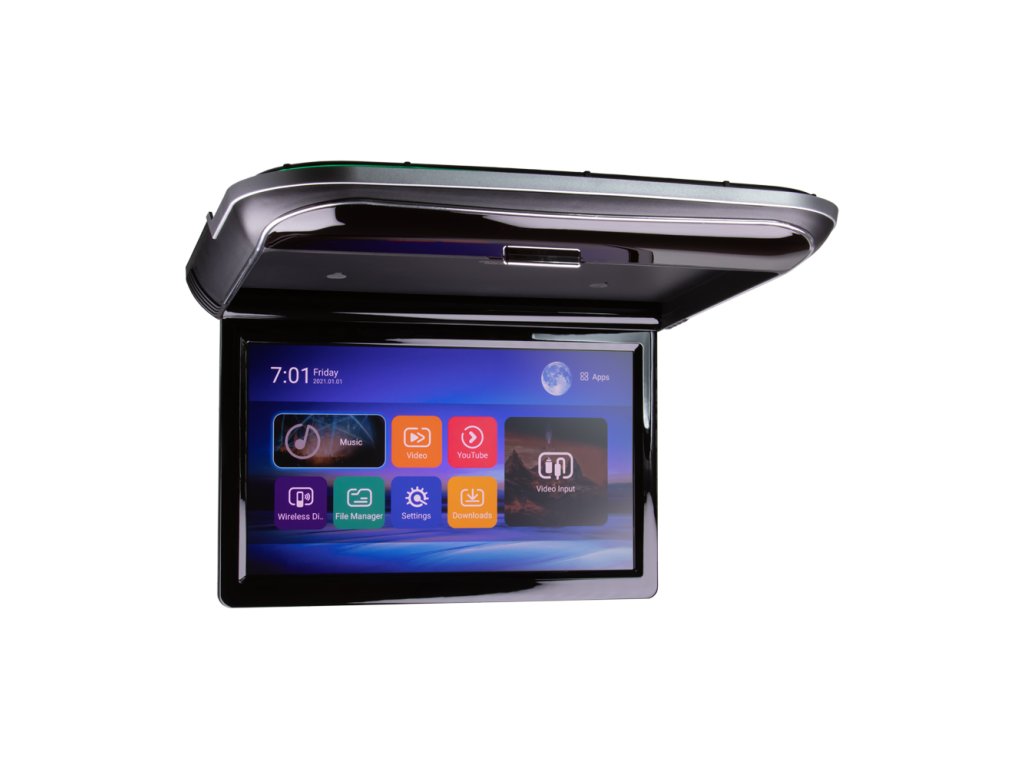 Kvalitní plochý stropní výklopný LED LCD monitor 11,6" s OS. Android, HDMI vstupem , čtečkou USB se zobrazením 16:9, dekorativní osvětlení (multicolor).