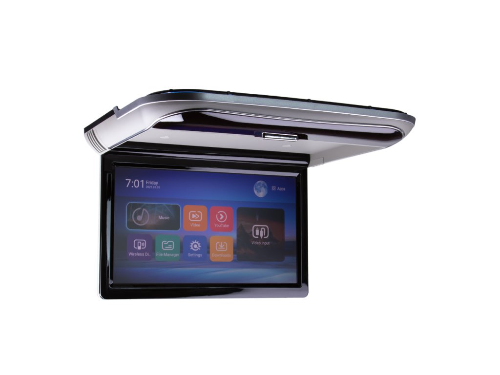 Kvalitní plochý stropní výklopný LED LCD monitor 11,6" s OS. Android, HDMI vstupem , čtečkou USB se zobrazením 16:9, dekorativní osvětlení (multicolor).