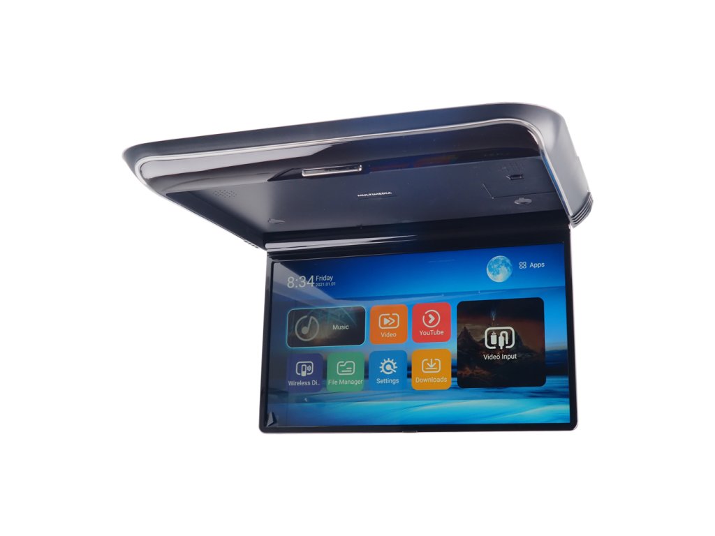 Stropní LCD monitor 13,98" s OS. Android USB/HDMI/IR/FM, dálkové ovládání se snímačem pohybu, černý