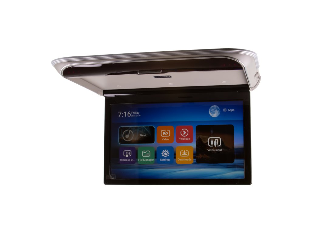 Stropní LCD monitor 15,6" s OS. Android USB/HDMI/IR/FM, dálkové ovládání se snímačem pohybu, šedá
