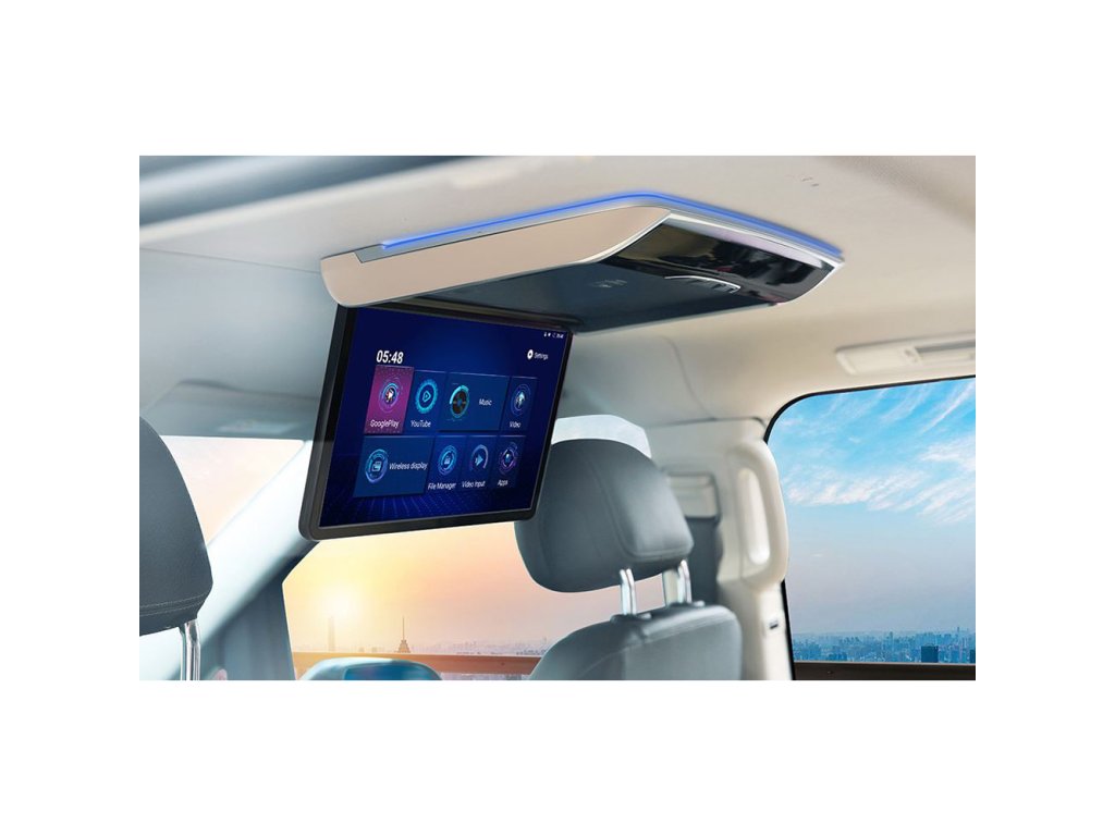 Kvalitní plochý stropní motoricky výklopný LED LCD monitor 13,3" s OS. Android, HDMI vstupem , čtečkou USB / SD se zobrazením 16:9, dekorativní osvětlení (multicolor).