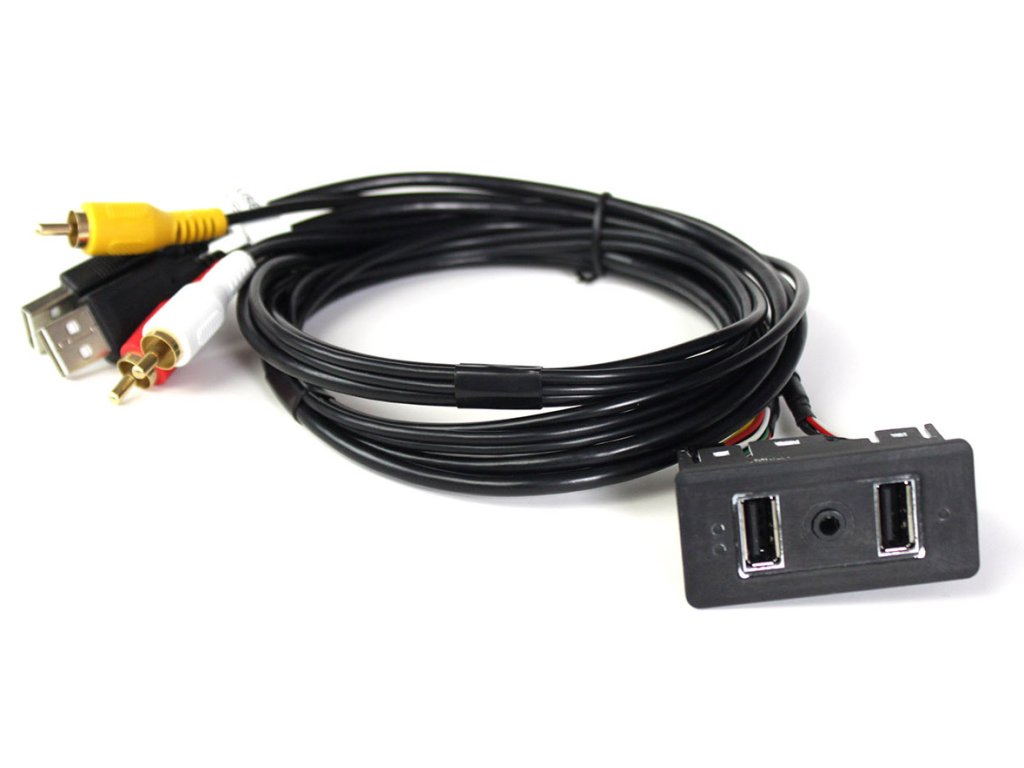 - umožňuje připojení dvou zařízení s konektorem USB a JACK 4-pólový audio/video konektory pro AV vstup