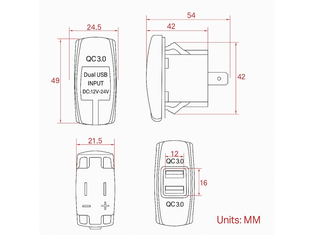 2x USB nabíječka QC3.0 , "Rocker" 12/24V, 36W