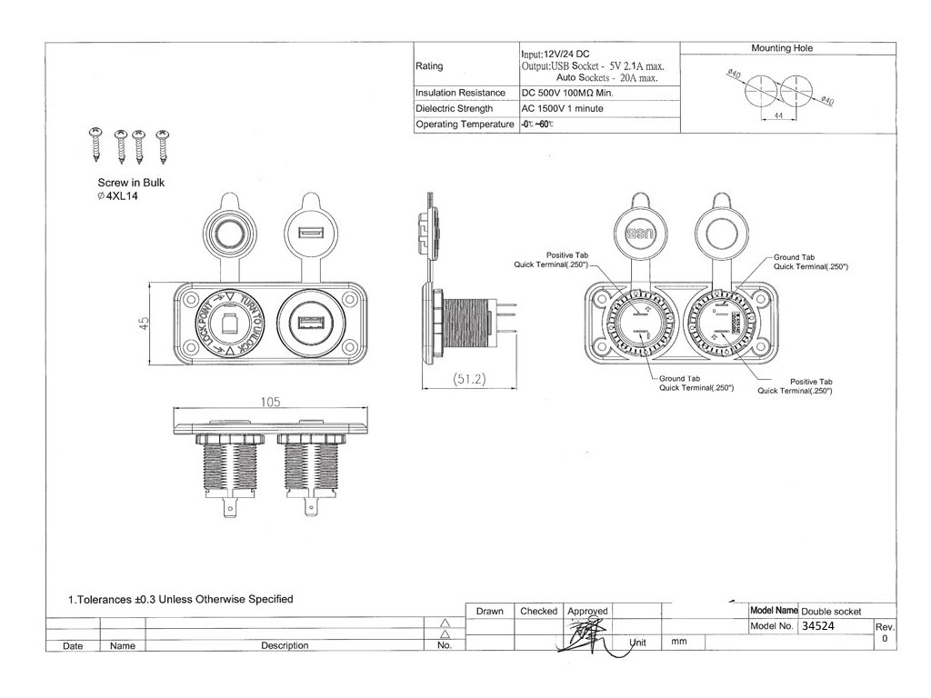 Dvojitá zásuvka do panelu 1x CL (max. 20 A) + 2x nabíječka USB voděodolná.