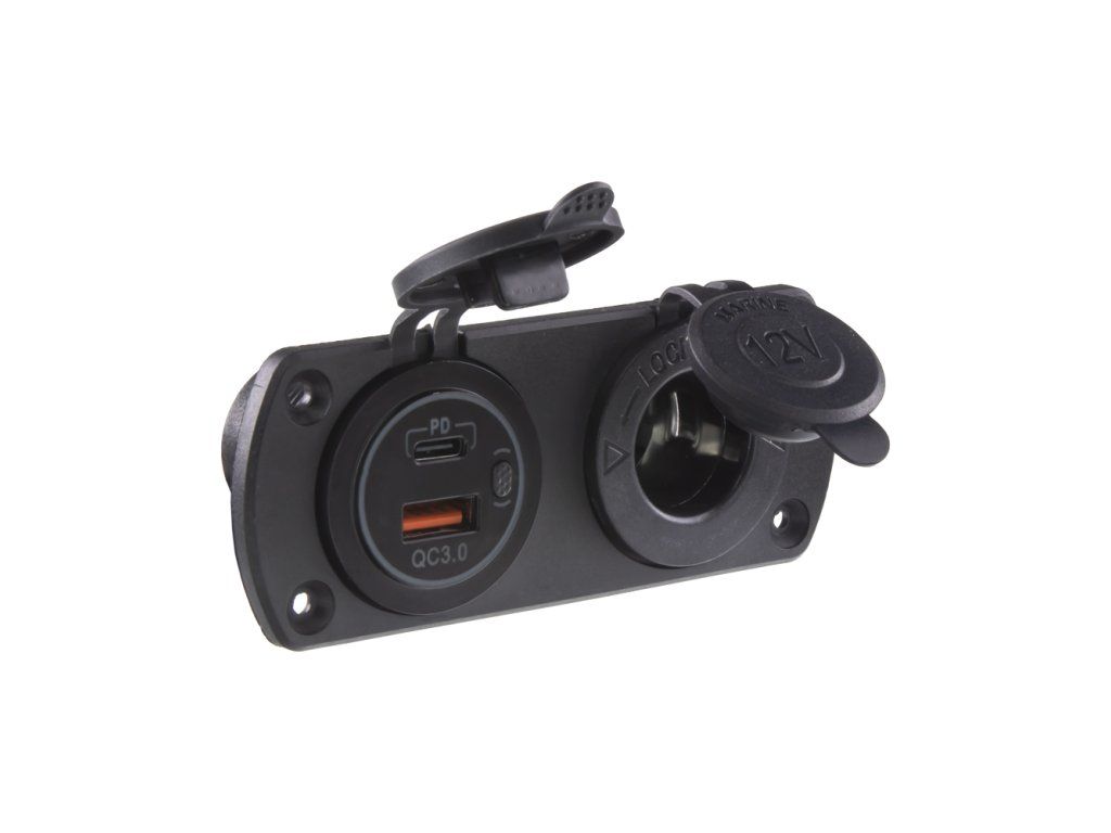 Dvojitá zásuvka do panelu 1x CL (max. 20 A) + 1x USB + USB-C zásuvka voděodolná.