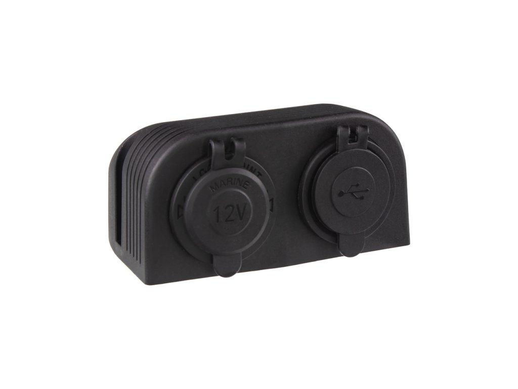 Dvojitá zásuvka s panelem 1x CL + 2x nabíječka USB voděodolná.