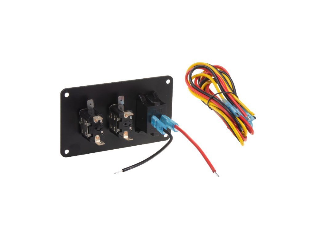 Panel s 2x spínači a USB + USB-C zásuvkou s voltmetrem.