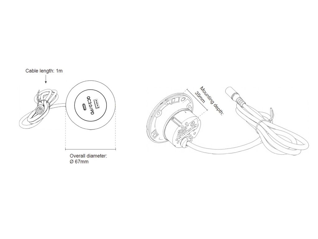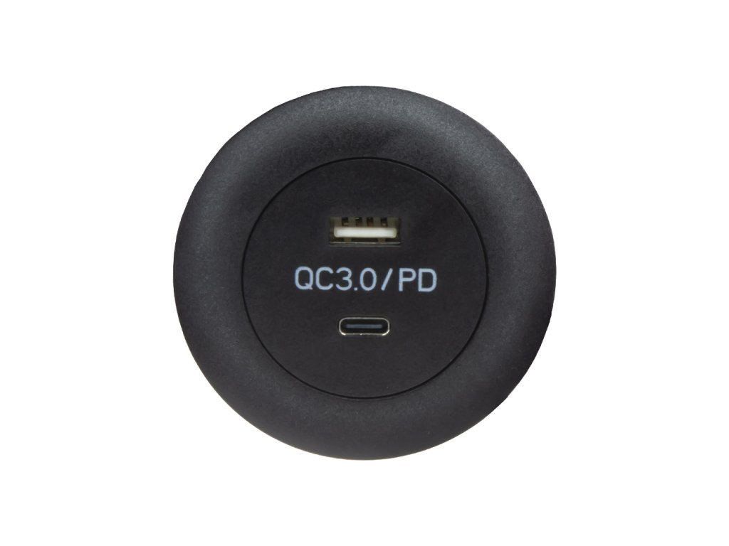 USB nabíječka do nábytku, 1x QC3.0 + USB-C.
