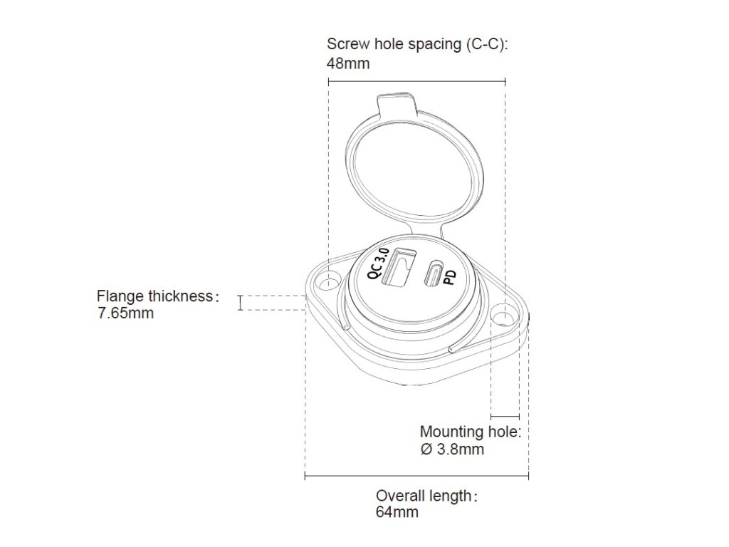 USB QC3.0 + USB-C zásuvka 12/24V, montáž na povrch