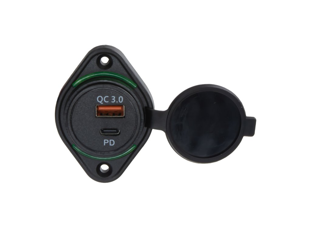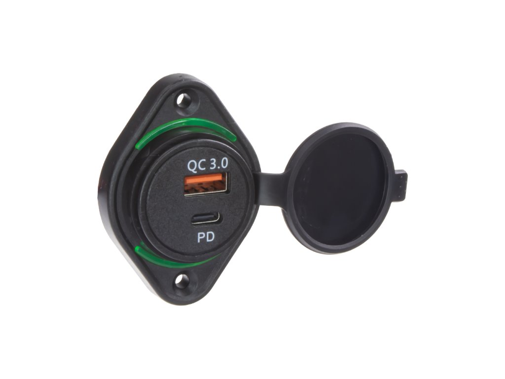 USB QC3.0 + USB-C zásuvka 12/24V, montáž na povrch