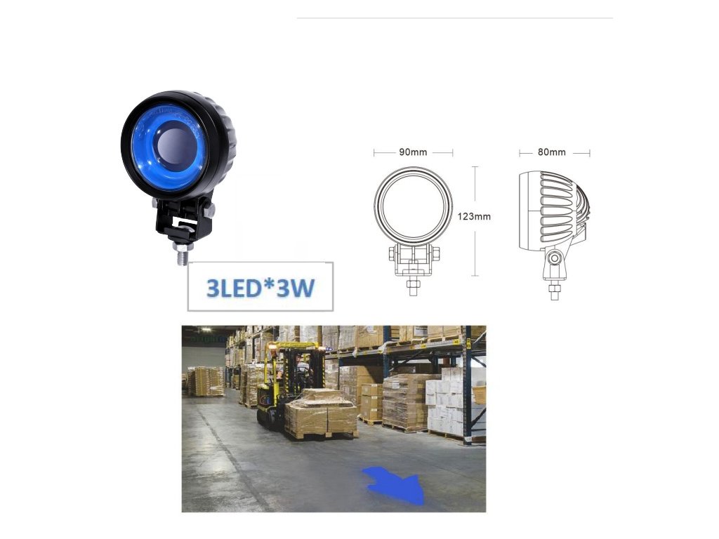Přídavné modré výstražné LED světlo pro externí montáž. Světlo je určeno např. pro montáž na vysokozdvižné vozíky, poté upozorňuje na pohyb vozíku modrou šipkou na zemi před vozíkem.