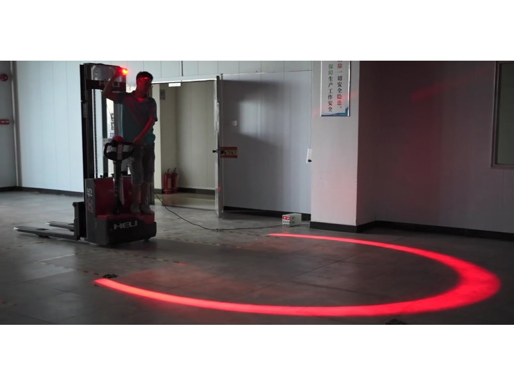 Přídavné červené výstražné LED světlo pro externí montáž. Světlo je určeno např. pro montáž na vysokozdvižné vozíky, poté upozorňuje na pohyb vozíku červeným obloukem na zemi před nebo za vozíkem.