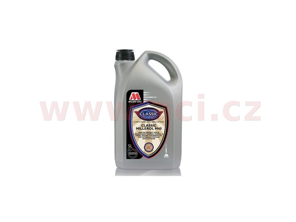 •Millerol M40 je jednorozsahový olej viskozity SAE 40, ideální pro nejstarší motory, nejeastiji z období poed rokem 1930. Stejni tak je vhodný i pro poevodovky z tohoto období.