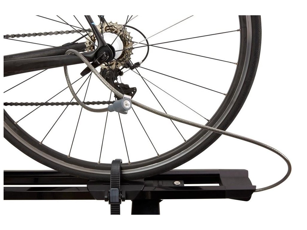 Zabezpečení Jízdní kolo na nosiči zabezpečíte pomocí lanka se zámkem. Systém jediného klíče: k uzamknutí cyklonosiče k nosičům a jízdního kola k cyklonosiči použijete stejný klíč.