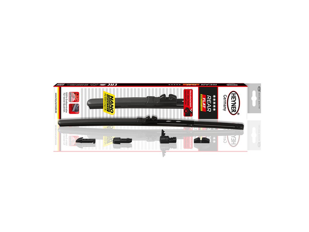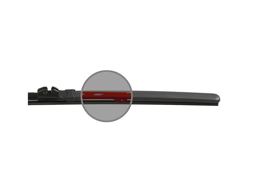 Moderní stěrač zadního okna s technologií HYBRID, který kombinuje aerodynamiku plochých stěračů a dokonalý kontakt se zadním sklem. Pevná odlehčená konstrukce zajišťuje rovnoměrný přítlak gumičky po celé ploše. Grafitová gumička s nano vrstvou má výborné stírací schopnosti s dlouhou životností.